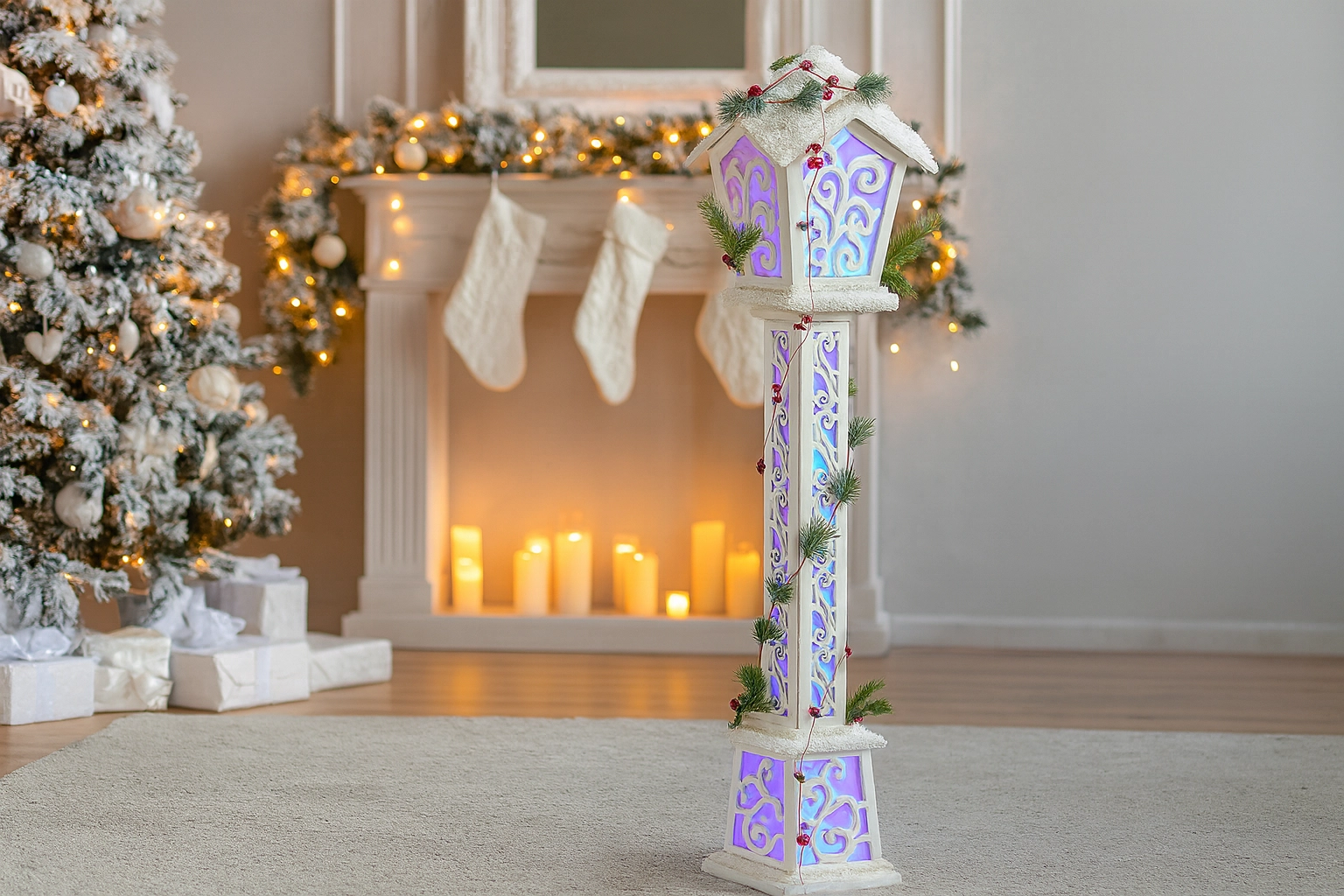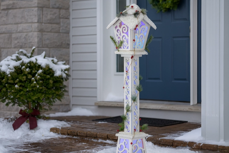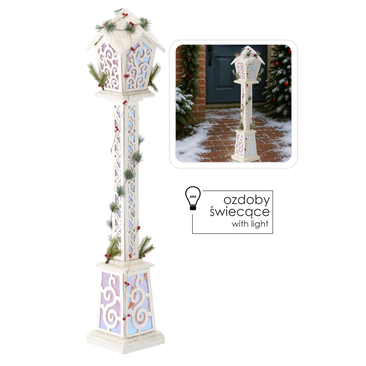 Unesite u dom i na verandu božićnu čaroliju s elegantnom bijelom LED lanternom visokom 120 cm. Nježna ambijentalna rasvjeta, dekorativni izrezi i akcenti sa zelenim grančicama i crvenim bobicama stvaraju ugodnu blagdansku atmosferu. Zahvaljujući napajanju na baterije lako je postavite bilo gdje – u hodnik, dnevni boravak ili pod natkriveni vanjski prostor.