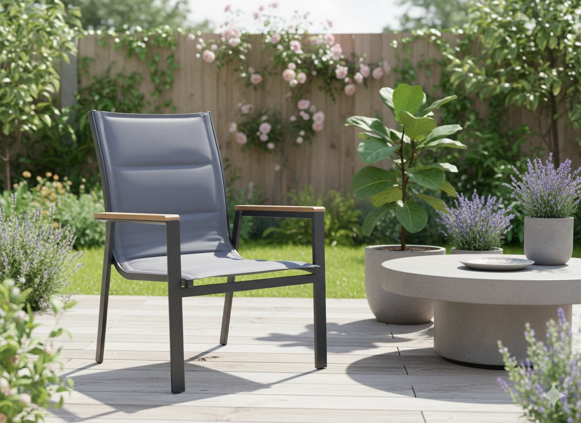 - Izdržljivi materijali za eksterijer – aluminij s praškastim lakiranjem i ploča od polywooda.