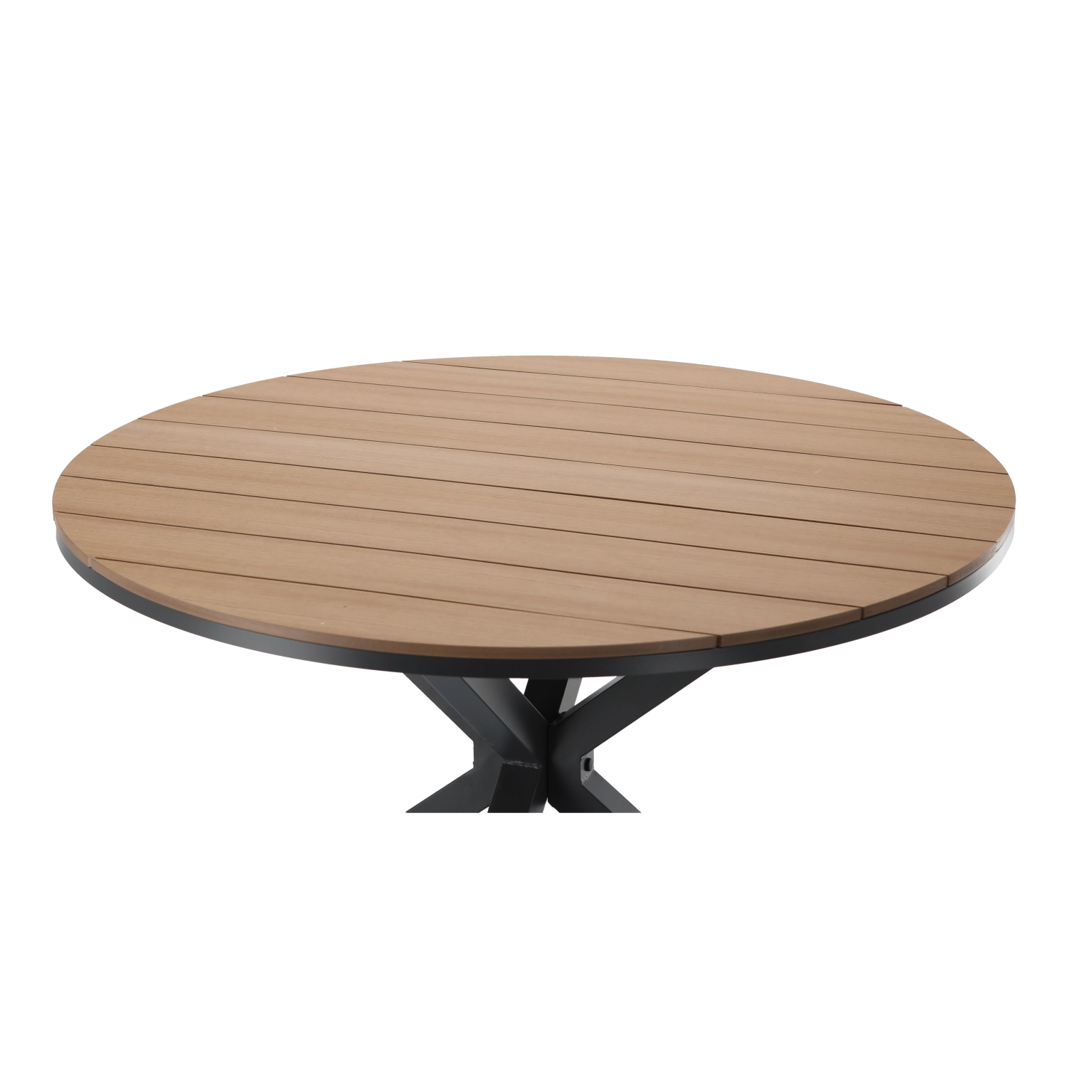 Ovaj okrugli vanjski stol nudi idealan omjer stila i funkcionalnosti. Aluminijski okvir s praškastim lakiranjem osigurava visoku otpornost na koroziju i malu težinu za lako rukovanje. Polywood ploča s dekorom dasaka daje prirodan drvenasti izgled, ali bez zahtjevnog održavanja.