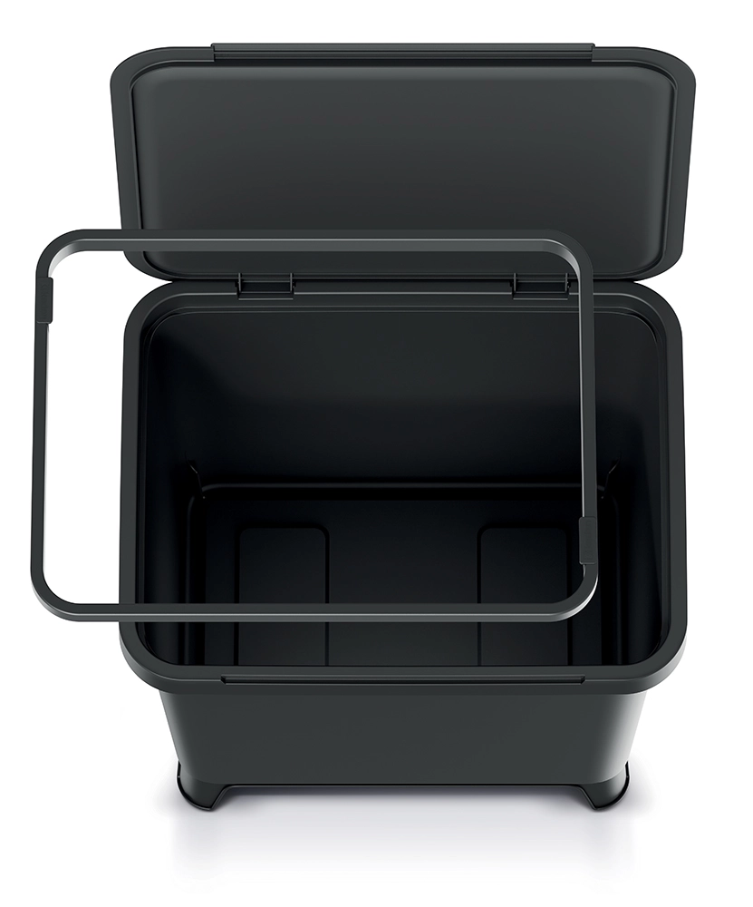 Stilna i praktična kanta za otpad zapremnine 29 l od reciklirane plastike u elegantnoj crnoj boji. Kompaktne dimenzije štede prostor, okretni poklopac učinkovito sprječava neugodne mirise i čvrst rub sigurno drži vrećicu na mjestu. Dio modularne linije Systema nagrađene Red Dot Design Award 2023 – idealno za odvajanje otpada kod kuće i u uredu.