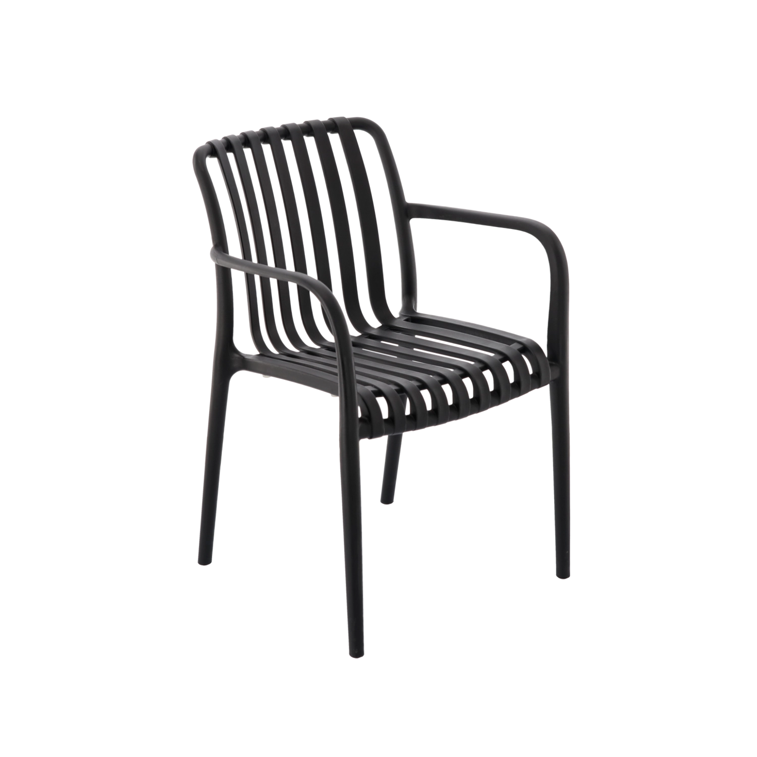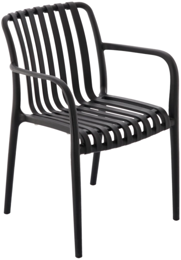 Stilna i izdržljiva vrtna stolica u elegantnoj crnoj boji od kvalitetne plastike s UV filtrom. Odlična za vrt, terasu i balkon, nudi ergonomski oblik za udobno sjedenje, otporna je na vremenske uvjete i lako se čisti. Maksimalna nosivost 110 kg.