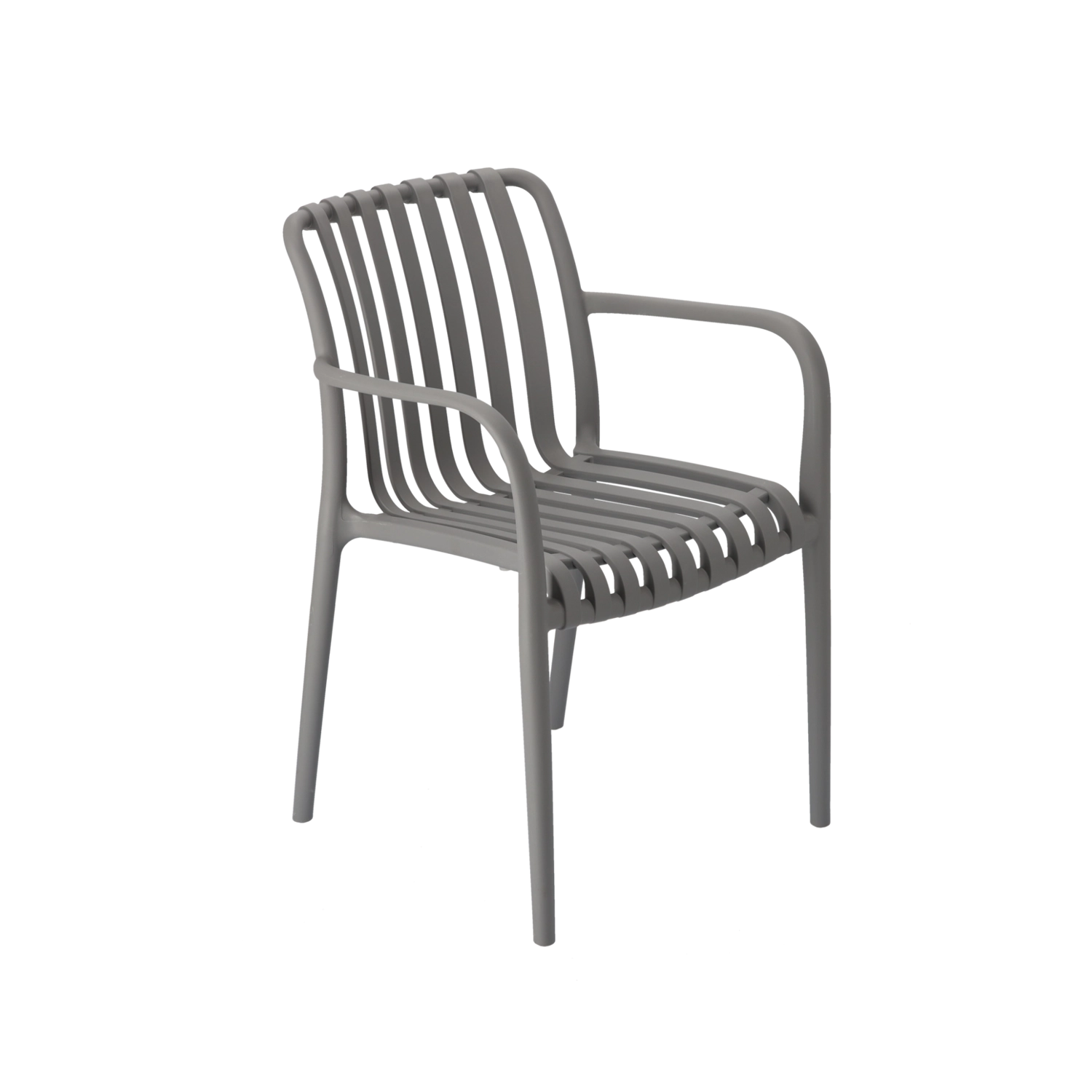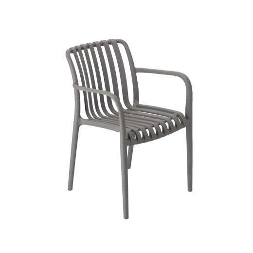 Ova siva vrtna stolica spaja moderan dizajn i praktičnost. Zahvaljujući materijalu s UV filtrom dugotrajno zadržava boju i izgled čak i pri izlaganju suncu. Laka je, stabilna i zbog ergonomskog oblika pruža udobnu potporu leđima za svakodnevno sjedenje u vrtu, na terasi ili balkonu.