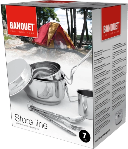 Praktičan 7-dijelni set lončića STORE LINE za kampiranje i planinarenje nudi sve potrebno za kuhanje i posluživanje u prirodi. Zahvaljujući izdržljivom nehrđajućem čeliku, preklopnim ručkama i kompaktnom, slagivom dizajnu idealan je za ruksak i auto.