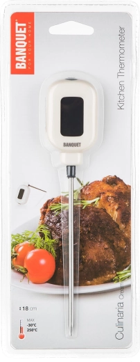 Termometar je lagan, kompaktan i jednostavan za upotrebu. Zahvaljujući plastičnom kućištu u krem boji i kvalitetnoj izradi, postat će pouzdan pomoćnik u svakoj kuhinji – od svakodnevnog kuhanja do blagdanskog pečenja.