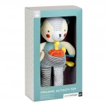 Održivost proizvodnje potvrđena je upotrebom GOTS organskog pamuka, recikliranih materijala i netoksičnih boja. Igračka je lagana, lako se drži i sigurna za bebe 0+, idealna za kolica, krevetić i za dom.