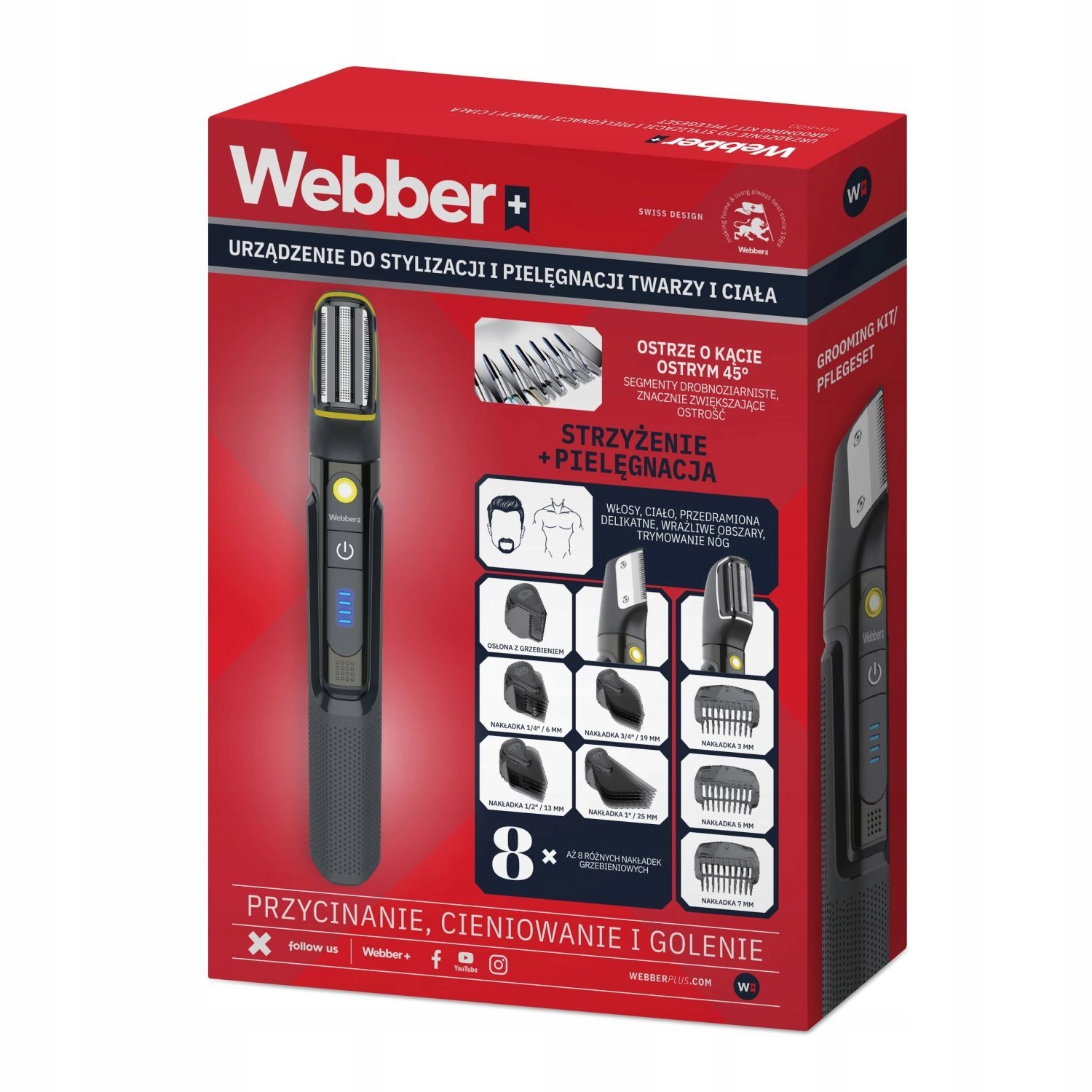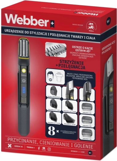 WEBBER BG-600 je praktičan i snažan pomoćnik koji omogućuje kompletnu njegu izgleda u jednom uređaju. Zahvaljujući tehnologiji Wet & Dry (IPX7) sigurno ga možete koristiti pod tušem i na suho, a oštre čelične oštrice pod 45° osiguravaju glatko šišanje uz minimalnu iritaciju. Integrirani LED zaslon prikazuje stanje baterije, pa uvijek imate jasan uvid u preostalu energiju.