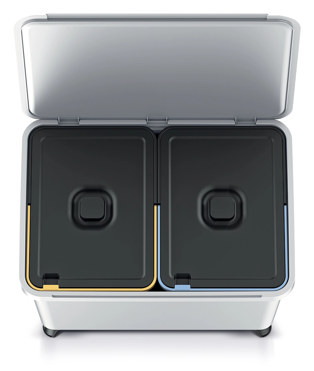 Praktična dvo-komorna kanta za razvrstavanje otpada zapremine 2×23 litara za jednostavno i higijensko odvajanje. Kompaktne dimenzije, izdržljiva plastika i jasno označeni poklopci u boji osiguravaju ugodno korištenje u svakom domu. Linija Systema osvojila je Red Dot Design Award 2023 za vrhunski dizajn i funkcionalnost.