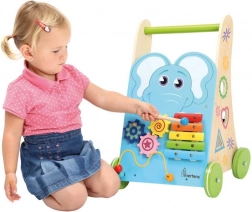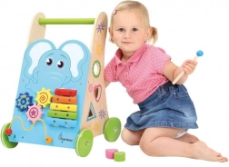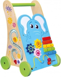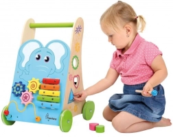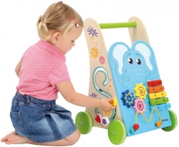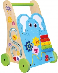 Podržite prve korake i znatiželjni um vašeg djeteta s ovim kvalitetnim drvenim guralom sa slonom. Nudi ksilofon s blagim zvukom, labirint s perlicama, umetaljku i zupčanike za zabavu i razvoj fine motorike. Tihi gumeni kotači štite pod i stabilna konstrukcija od FSC drva jamči sigurnu igru od 18 mjeseci.