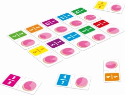 Igra školom – Zabavni razlomci idealno je pomagalo za prvo upoznavanje s razlomcima. Djeca spajaju polovice kartica – jednu s brojčanim razlomkom i drugu sa slikovnim prikazom. Zahvaljujući obliku slagalice odmah provjeravaju je li uparivanje ispravno te uče bez stresa kroz igru.