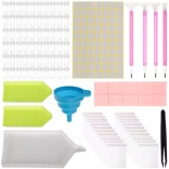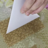 Za udoban rad tu su 4 aplikatora različitih veličina, precizna pinceta, 3 posudice za sortiranje i silikonski sklopivi lijevak za lako presipanje kamenčića bez nereda. Voštani kvadratići osiguravaju siguran prihvat kamenčića, a spatula za poravnavanje pomaže postići savršeno ravan rezultat.
