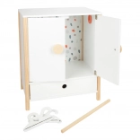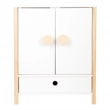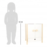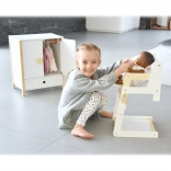 Izdržljiva drvena konstrukcija, stabilna izrada i sigurni, zaobljeni rubovi osiguravaju ugodnu i sigurnu igru. Ormarić potiče samostalnost, osjećaj za red i razvija maštu u igri brige o lutkama.