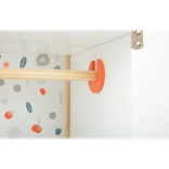Ovaj stilski ormarić za lutke iz linije Little Button spaja čiste linije, prirodne materijale i funkcionalnu unutarnju organizaciju. Djeca imaju sve nadohvat ruke: vješalicu s ramenicama za vješanje haljinica, uklonjive police za dodatke i prostranu ladicu za sitnice. Minimalistička izvedba s nježnim tonovima prirodno se uklapa u moderan interijer.