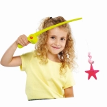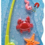Ova sjajna igračka pretvara svako kupanje ili dan kod dječjeg bazenčića u zabavan ribarski izlet. Dolazi sa štapom duljine 36 cm, koji je opremljen automatskim otpuštanjem užeta pri pritisku na gumb. Igra također uključuje tri morske životinje za lov koje dodaju raznolikost i zanimljivost cijeloj igri. Odličan izbor za djecu od 3 godine, koji razvija motoričke sposobnosti i koordinaciju očiju i ruku.