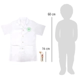 Dječji doktorski set small foot donosi sve što malim liječnicima treba za njihovu prvu ordinaciju. Ogrtač u veličini 110 prikladan je za djecu visoku 105–110 cm i zahvaljujući kopčanju na drukere lako se oblači i svlači. Drveni rekviziti ugodni su u ruci, izdržljivi i sigurni za dječju igru.