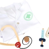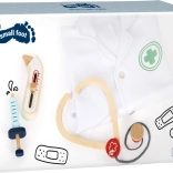 Otkrijte zabavan i realističan način igre uloge s dječjim doktorskim setom small foot. Set uključuje pamučni liječniški ogrtač s kopčanjem na drukere i robusnu drvenu opremu – stetoskop, špricu s pomičnim klipom i toplomjer s podesivim pokazivačem. Idealno za igranje uloga, karneval te razvoj mašte i socijalnih vještina.