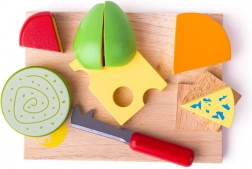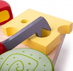 Drvo je glavni materijal ovog precizno izrađenog seta sa sirom. Djeca mogu isprobati ulogu kuhara pomoću šarenih drvenih sirnih dijelova koji izgledaju poput pravih sireva. Set sadrži ne samo sireve, već i nož i kekse za savršenu imitaciju serviranja sireva. Drveni dijelovi potiču na kreativnu igru i istovremeno pomažu u razvoju fine motorike djece.