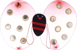 U kompletu su prozirna ružičasto-crvena krila sa svjetlucavim točkicama, elastična suknja u crveno-crnim prugama, traka za kosu s elastičnim ticalima i usklađeni štapić s vrpcama. Veličina seta je namijenjena djeci od 3 godine; dimenzije pakiranja cca 49 × 57 cm.