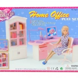 Uredski set GLORIE idealan je izbor za djecu koja vole realistično igranje zanimanja i uređenje interijera za svoje lutke. Zahvaljujući bogatoj opremi, stvorit ćete potpuno radno mjesto – od radnog stola s računalom i pisačem do udobne stolice i praktične police.