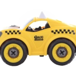 Sastavi, zavij i vozi! Ovaj kreativni set spaja vijčani model žutog taxija s mogućnošću pretvorbe u auto na daljinsko upravljanje. Djeca najprije sama sastave auto pomoću odvijača ili bušilice, a zatim izvade motor iz bušilice, umetnu ga u auto i uživaju u jednostavnom upravljanju naprijed i natrag.