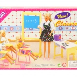 Stvorite školsku atmosferu kod kuće s setom Glorie školski razred. Ovaj bogato opremljen set uključuje ploču, učiteljski stol i stolicu, 3 stolice s naslonima za ruke, računalo s tipkovnicom, torbe i papirnate bilježnice i testove. Idealan za kreativnu igru i razvoj dječje mašte. Lutke nisu uključene u pakiranje.