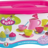 - Vrč, 4 šalice s tanjurićima, 4 žličice za kavu, šećernica s poklopcem, vrč za mlijeko, 4 cupcakesa, spremnik s poklopcem