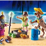 Playmobil Scooby-Doo! Pustolovina s Čarobnim Doktorom donosi uzbudljivo iskustvo rješavanja zagonetki. Djeca se mogu uroniti u svijet Scooby-Dooa i Velme, koji se prerušavaju u havajsku odjeću kako bi riješili slučaj duhova. Set omogućuje djeci otkriti pravi identitet čarobnog doktora pomoću kartice koju je moguće skenirati čitačem iz Mystery Machine vozila ili Uklete kuće.