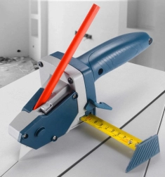 Alat za precizno rezanje gips kartonskih ploča, idealan za profesionalce i kućne majstore. Ovaj proizvod opremljen je posebnim mjerilom duljine 5 metara s blokadom i oštrim nožem, što omogućuje precizno prilagođavanje gips kartonskih ploča. Uključena je i olovka za označavanje. Zahvaljujući promišljenom dizajnu, moguće je lako izvoditi rezove bilo kojeg oblika, uključujući kružne.