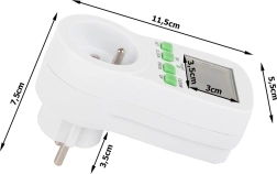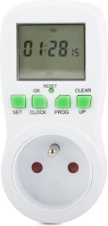 Praktikus digitális konnektoros időzítő nagy LCD kijelzővel, amellyel a beállított program szerint automatikusan be- és kikapcsolhatja a készülékeket. Energiát takarít meg, növeli a biztonságot és a kényelmet, akár 16 programot, véletlenszerű kapcsolási módot a jelenlét szimulálásához és visszaszámlálást kínál. Maximális terhelés 3680 W / 16 A, pontos idővezérlés 24/12 órás módban.