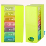 Heti tabletta szervező ideális segítő mindenki számára, aki szeretné áttekinteni gyógyszereit. Az 7 színes fiókra osztott szervező egyszerűsíti annak követését, mely nap melyik tablettákat kell bevenni.