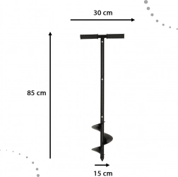 A 30 cm széles T-fogantyú biztos fogást és kiváló kontrollt nyújt fúrás közben. A 15 cm átmérőjű spirálpenge és a 85 cm-es hossz lehetővé teszi, hogy gyorsan kifúrja a lyukakat palántákhoz és kisebb oszlopokhoz, felesleges megerőltetés nélkül.