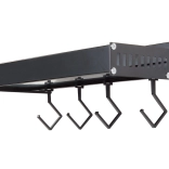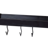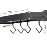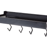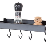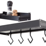Ez a fali polc a minimalista megjelenést maximális funkcionalitással ötvözi. A porszórt alumínium ellenáll a nedvességnek és a korróziónak, így ideális a konyhába és a fürdőszobába is. A levehető kampókra felakaszthatja a törölközőket, merőkanalakat vagy kulcsokat, míg a felső tároló rész biztonságosan tartja a fűszereket, tégelyeket vagy kozmetikumokat.