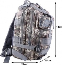Szerelje fel magát egy hátizsákkal, amely tökéletesen van kialakítva a nehéz körülményekhez. Ez a rendkívül tartós taktikai hátizsák minőségi anyagokból készült, ami biztosítja annak szilárdságát és kopásállóságát. Az vízálló anyag lehetővé teszi, hogy esős időben is kalandozzon.