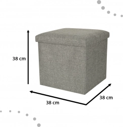 A szürke összecsukható tároló puff ideális kiegészítő minden nappaliba, előszobába vagy gyerekszobába. Habszivacs töltése kényelmessé teszi hosszú órákon át tartó ülésre is. A kényelem mellett praktikus tárolóhelyet kínál különféle apróságok, játékok, cipők vagy takarók számára.