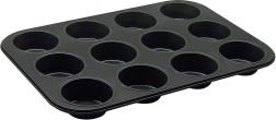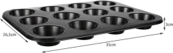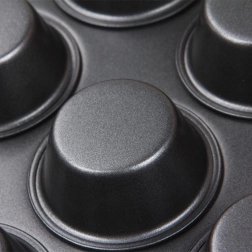 A forma 12 darab 6,7 cm átmérőjű nyílással rendelkezik, ami lehetővé teszi az egyenletes melegítést és a sütemények könnyű eltávolítását. Magas minőségű teflonból készült, ami ellenálló és könnyen tisztítható.