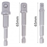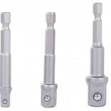 A készlet három adaptert tartalmaz, amelyek tartós acélból készültek, ami hosszú élettartamot garantál. Az adapterek lehetővé teszik a csavarhúzó használatát különböző méretű fejekkel.