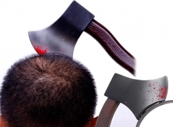 A fejpánthoz rögzített „balta” két vége meglepően valósághű hatást kelt egyetlen csepp vér nélkül. Ideális a figyelemfelkeltő, horroros megjelenéshez.