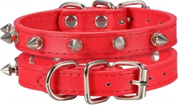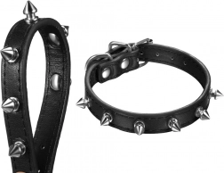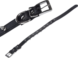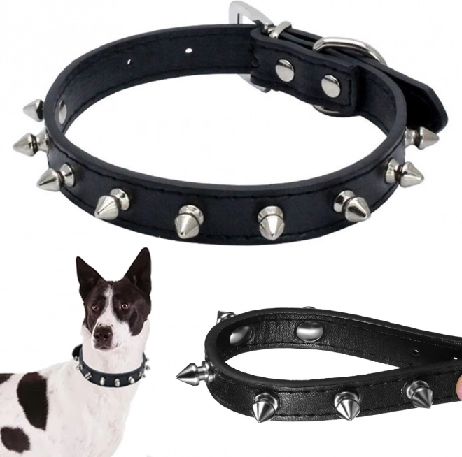 A markáns szegecsekkel díszített elegáns nyakörv ötvözi a modern megjelenést és a praktikus funkcionalitást. A puha ökobőrnek köszönhetően kényelmes viselet, nem dörzsöli a szőrt vagy a bőrt, és könnyen tisztán tartható. A masszív fém csat és a póráz rögzítésére szolgáló fém karika biztonságot nyújt a mindennapi séták során.