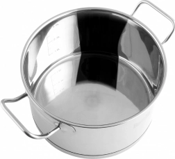 Ez az edény praktikus litermércével van felszerelve belül, ami pontos mennyiség mérésre ad lehetőséget az ételek elkészítéséhez szükséges folyadékok és alapanyagok adagolásánál. Ez biztosítja, hogy az ételeknek mindig megfelelő állaguk legyen. Ne feledkezzünk meg a 3,4 mm vastag háromrétegű aljról, ami egyenletes hőelosztást biztosít, és csökkenti annak kockázatát, hogy az ételek odaégjenek. Ennek köszönhetően a főzés hatékonyabb és energiahatékonyabb.