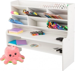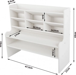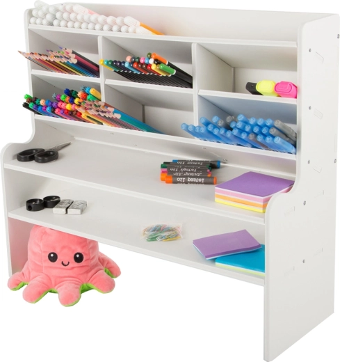 Elegáns fehér asztali rendező, ideális irodai és iskolai eszközök elrendezéséhez. Több rekesz biztosítja az összes szükséges kiegészítő hatékony elérését.
