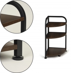 A keret fémanyagból készült, matt fekete porfestéssel, amely karcálló. A polc formája tökéletesen illeszkedik a sarokba.