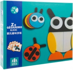 Színes fa kirakó geometriai formákból készült állatokkal, amely fejleszti a gyerekek fantáziáját, kreativitását és finommotorikáját. A gyerekek három nehézségi szinten, kártyák alapján rakják ki a mintákat, miközben gyakorolják a logikus gondolkodást, a koncentrációt és a türelmet. Tartós fa és praktikus hordozózsák teszi hosszú távú, oktató játékká a mindennapokra.