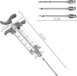 Ez a konyhai injektor ideális házi füstöléshez, sütéshez és grillezéshez. Lehetővé teszi a sós lé, alaplé vagy marinád közvetlen befecskendezését a húsrostok közé, ami jelentősen lerövidíti a pácolási időt, és egyenletes sózást és ízesítést biztosít. Az átlátszó, milliliter beosztású test megkönnyíti a pontos adagolást.