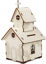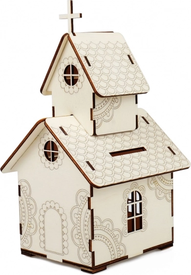 A funkcionalitás és az esztétika összekapcsolása ihlette ezt az egyedülálló fa perselyt Templom alakban. Az 2 az 1-ben kialakítás egyesíti a világító templomot és a mézeskalács perselyt, amely örömet okoz gyermekeknek és felnőtteknek egyaránt. A persely kiváló minőségű 3 mm-es nyárfa anyagból készült, és tartalmaz egy LED gyertyát cserélhető 3V-os elemmel.