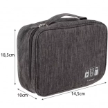 A szervező fő része állítható és elválasztott rekeszeket tartalmaz különféle kábelekhez, töltőkhöz és más kiegészítőkhöz. A hálós és gumírozott rekeszek biztosítják, hogy minden a helyén maradjon. A fogantyúval a könnyű szállítás érdekében ideális társ az utazások, az irodai használat, vagy találkozók során.