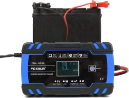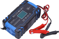 Kompakt és intelligens töltő 12V/24V autóakkumulátorokhoz digitális kijelzővel és javító móddal. Biztosít gyors és biztonságos töltést, kínál téli és nyári módot, automatikus védelmet és pulzáló regenerálást a legyengült akkumulátorok újjáélesztéséhez. Ideális autókhoz, motorkerékpárokhoz és más járműakkumulátorokhoz.