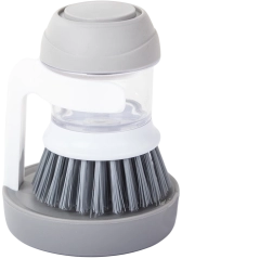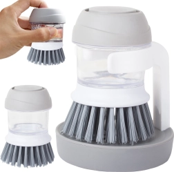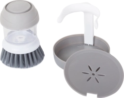 Tegye a mosogatást gyors és kellemes rutinná. Az átlátszó tartályú, adagolós kefe lehetővé teszi a mosogatószer közvetlen kiadását dörzsölés közben – csak nyomja meg a felső gombot. Kompakt méreteivel és szürke, minimalista dizájnjával bármely konyhába illik.