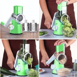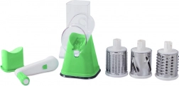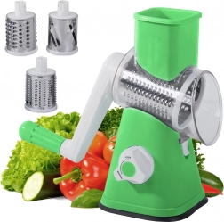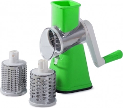 Praktikus kézi forgókéses szeletelő és 3 az 1-ben reszelő tapadókorongos talppal a stabilitásért és három cserélhető dobbal. Ideális gyors és hatékony sajt-, dió- és zöldségreszeléshez, valamint szeleteléshez. A hozzávalók biztonságos adagolásának, a könnyű kezelésnek és a kompakt kialakításnak köszönhetően felgyorsítja saláták, levesek és egészséges nassolnivalók elkészítését.