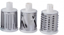 A csomagban három fém dobot talál a különböző feldolgozási módokhoz: finom reszelés sajthoz és dióhoz, durva reszelés salátákhoz való zöldségekhez, valamint szeletelő dob vékony uborka-, cukkini- vagy répaszeletekhez. Remek választás egészséges chipset, zöldségsalátákat és hozzávalók gyors előkészítését igénylő levesekhez és mártásokhoz.