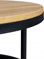 Vigyen könnyedséget és ipari stílusú karaktert a belső térbe. A 60 cm átmérőjű kerek dohányzóasztal kompakt méreteinek köszönhetően kisebb és tágasabb helyiségekbe is illik. A fa dekor és a fekete acél időtálló párosa remekül illeszkedik modern és klasszikus bútoregyüttesekhez.