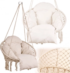 Élvezze a tökéletes pihenést a gólyafészek típusú függőszékben, puha párnával. Masszív felépítés, 150 kg teherbírás és 80 cm átmérő a kényelemért és stabilitásért. Az időtlen ekrü szín illik a kertbe, teraszra, erkélyre és a lakásba is.